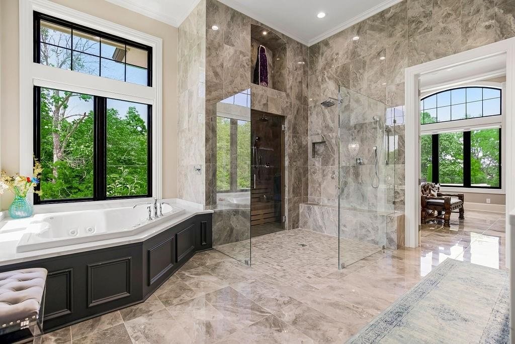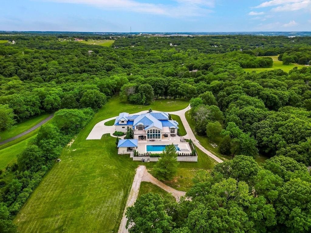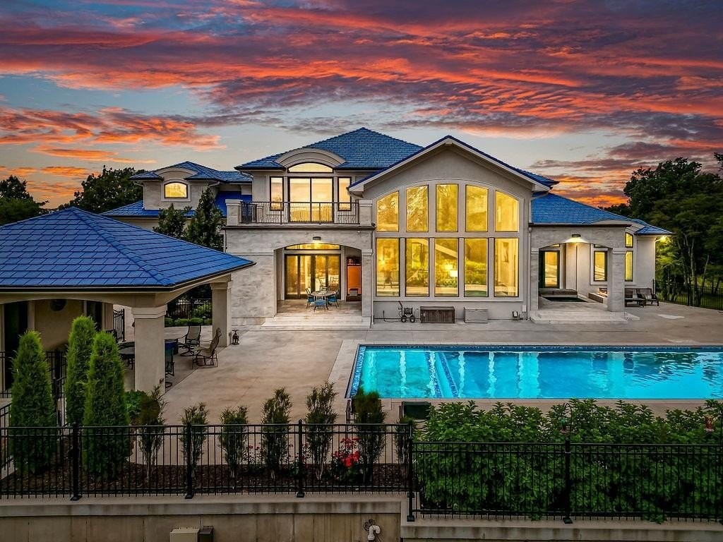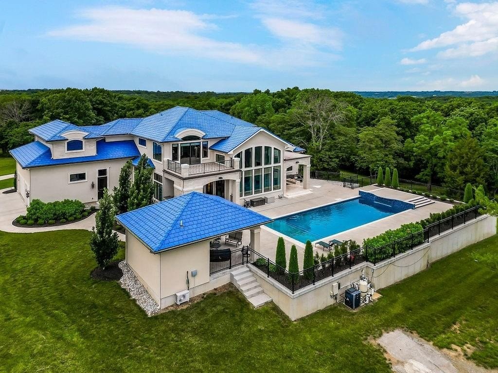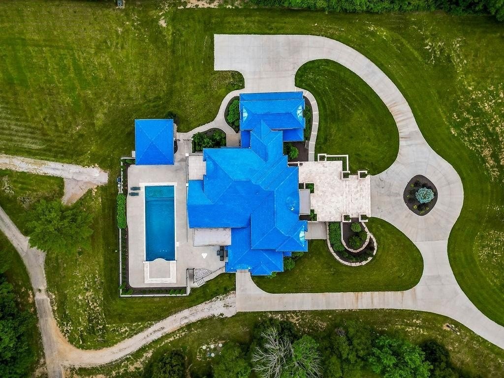 Hidden Luxury Estate in the Heart of the City. Nestled on 14+ private acres, this estate offers unmatched seclusion just minutes from the city. A gated 700 tree-lined driveway leads to a 9, 000+ sq. ft. residence crowned with a blue DaVinci roof. Palatial travertine steps ascend to the front door, unveiling a grand entry with soaring 26 ceilings, a dazzling crystal chandelier, and a spiral staircase encircling a glass elevatorproviding an unforgettable first impression. Designed for seamless indoor-outdoor living, this open-concept estate features floor-to-ceiling windows leading to a private oasis. The 20 x 50 pool showcases a diving platform, cascading waterfall, and gunite hot tub positioned beneath a glass-filled firebox. The covered cabana, patios, fireplace, and integrated whole-home speaker system make entertaining effortless. At the heart of the home, the kitchen boasts an oversized island with side stations, topped with luxury granite and quartzite, creatively concealing hidden shelves and high-end appliancesSub-Zero, Wolf, and Fischer & Paykel. A butlers pantry with a secondary kitchen enhances functionality. The master suite features private pool access, a laundry room, sitting area, his-and-hers dressing rooms with lighted vanities, and an 8 revolving shoe rack. The spa-like bath includes a glass-enclosed shower, Jetta tub, sauna, and waterfall granite dual vanity. A second guest suite offers a walk-in closet and en-suite bath. Upstairs, a grand sitting area connects two executive offices and a tiled deck, along with two bedroom suites, each with walk-in closets and en-suite baths. The walkout lower level includes a home theater, rec room with full bar, a hidden storm shelter with exterior access, and a gym with a spa bath. There is a 4-car attached garage, workshop + a separate guest house w/ 2-car attached garage and a 30 x 50 shed used as a pickleball/basketball court. Call Agent for Private Viewing today!