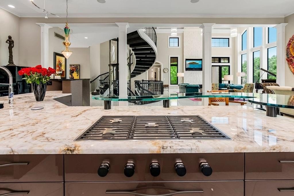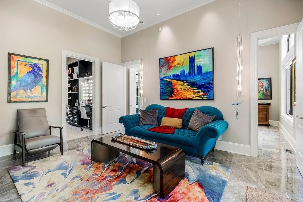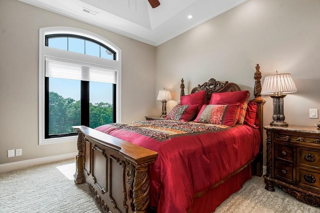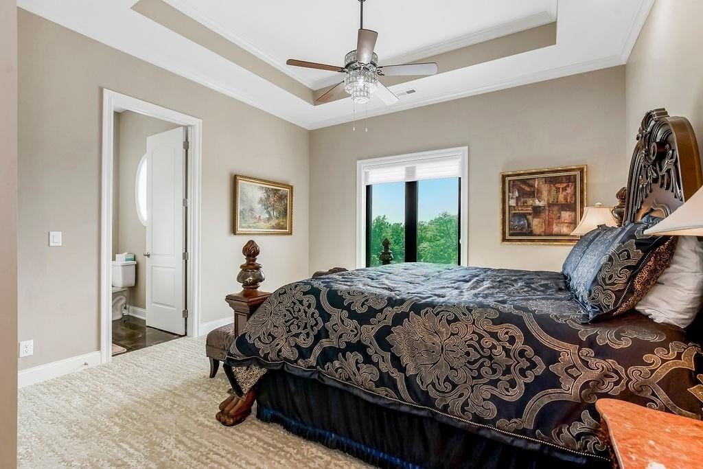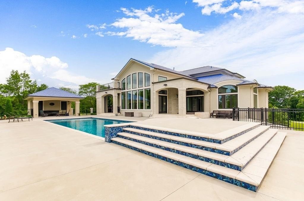 Hidden Luxury Estate in the Heart of the City. Nestled on 14+ private acres, this estate offers unmatched seclusion just minutes from the city. A gated 700 tree-lined driveway leads to a 9, 000+ sq. ft. residence crowned with a blue DaVinci roof. Palatial travertine steps ascend to the front door, unveiling a grand entry with soaring 26 ceilings, a dazzling crystal chandelier, and a spiral staircase encircling a glass elevatorproviding an unforgettable first impression. Designed for seamless indoor-outdoor living, this open-concept estate features floor-to-ceiling windows leading to a private oasis. The 20 x 50 pool showcases a diving platform, cascading waterfall, and gunite hot tub positioned beneath a glass-filled firebox. The covered cabana, patios, fireplace, and integrated whole-home speaker system make entertaining effortless. At the heart of the home, the kitchen boasts an oversized island with side stations, topped with luxury granite and quartzite, creatively concealing hidden shelves and high-end appliancesSub-Zero, Wolf, and Fischer & Paykel. A butlers pantry with a secondary kitchen enhances functionality. The master suite features private pool access, a laundry room, sitting area, his-and-hers dressing rooms with lighted vanities, and an 8 revolving shoe rack. The spa-like bath includes a glass-enclosed shower, Jetta tub, sauna, and waterfall granite dual vanity. A second guest suite offers a walk-in closet and en-suite bath. Upstairs, a grand sitting area connects two executive offices and a tiled deck, along with two bedroom suites, each with walk-in closets and en-suite baths. The walkout lower level includes a home theater, rec room with full bar, a hidden storm shelter with exterior access, and a gym with a spa bath. There is a 4-car attached garage, workshop + a separate guest house w/ 2-car attached garage and a 30 x 50 shed used as a pickleball/basketball court. Call Agent for Private Viewing today!